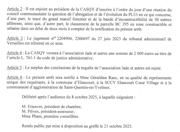 21 Octobre 2025, Arrêt rendu par la Cour administrative d’appel de Versailles, censurant le PLUi de la CASQY: