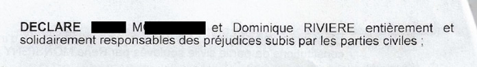 Votre père Dominique Rivière est condamné dans différents dossiers. Plutôt que de mettre en cause le travail des associations, il serait avisé de faire preuve de circonspection dans vos déclarations publiques, dans la mesure où votre rôle dans ces événements demeure incontestable.