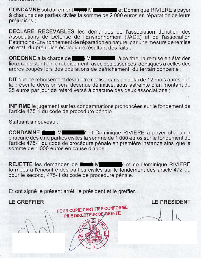 Les Associations, sollicitées par des habitants de Septeuil pour protéger leur environnement, sont aussi parfois à l’origine de recettes pour la commune de Septeuil : Ainsi, quand nous obtenons par un jugement le remboursement de 13 000 € par votre père Dominique Rivière à la commune (suite à l’utilisation injustifiée de fonds municipaux), ce sont bien les Septeuillais qui en bénéficient.
