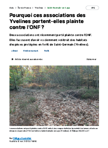 Suite aux propos de Monsieur Savatte, Directeur de l’ONF IDF Ouest, dans Actu78 le 06/11/25, les Associations JADE et Sauvons les Yvelines publient une Lettre ouverte afin d’apporter un démenti.